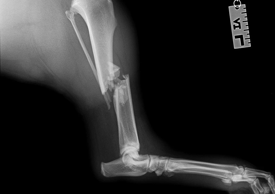 Trzyletni pies Reksio trafił do nas po 3 dniach od urazu, którego efektem było złamanie kości piszczelowej lewej. Złamanie zostało potwierdzone po…