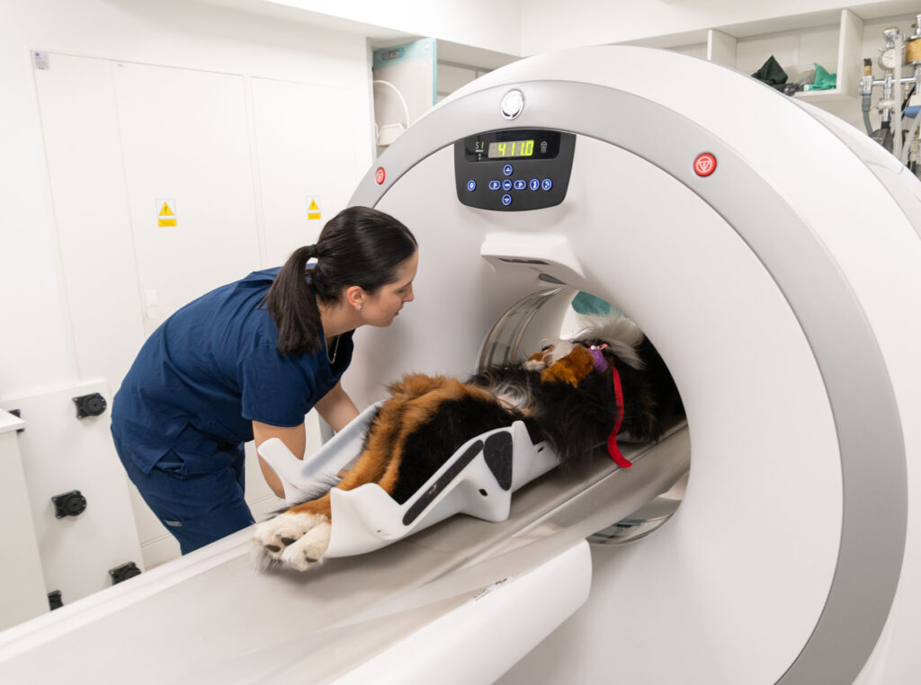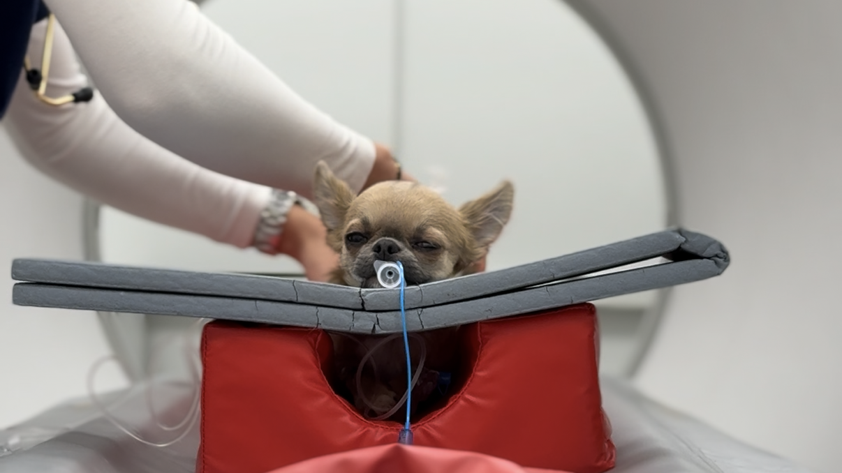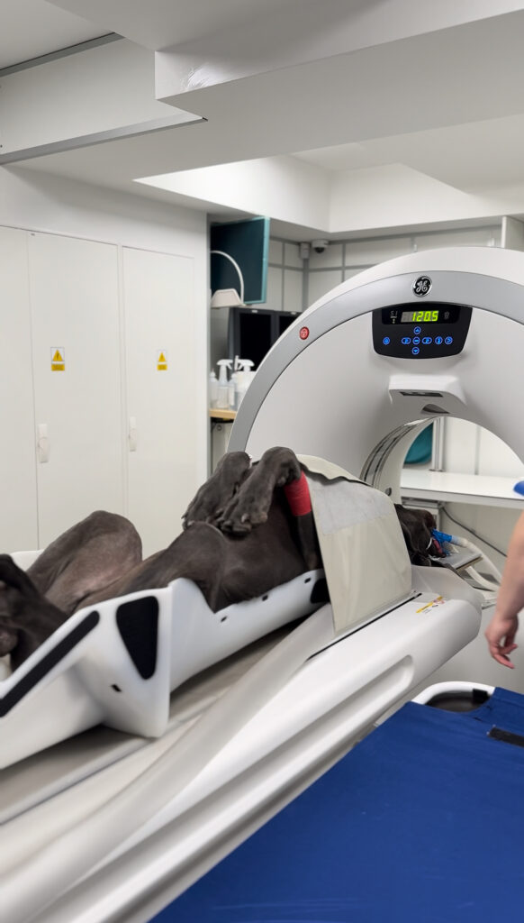 Tomografia komputerowa u zwierząt wykonywana jest w znieczuleniu ogólnym, ponieważ badanie wymaga całkowitego unieruchomienia pacjenta.