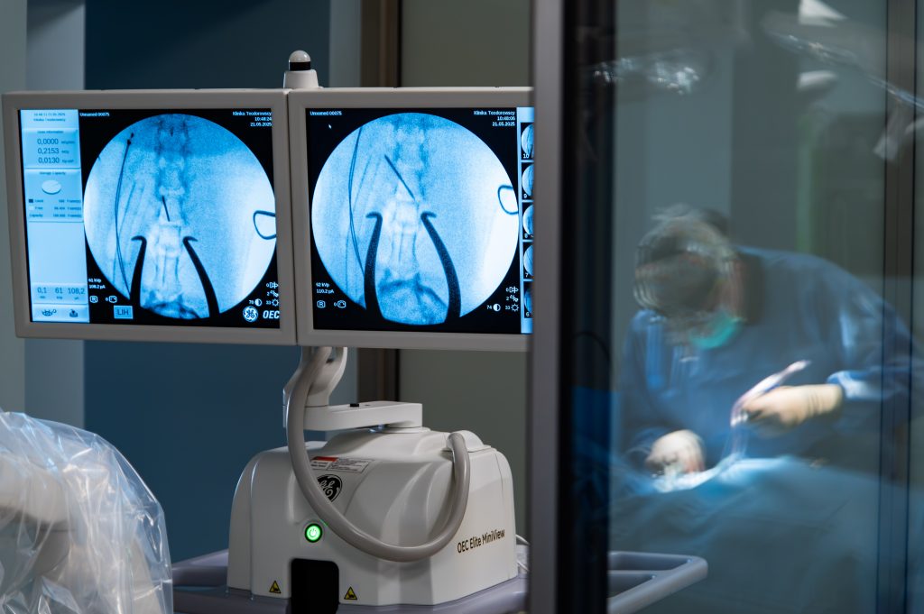 W Klinice Teodorowscy wykonujemy zaawansowane operacje kręgosłupa u psów i kotów, stanowiące jeden z kluczowych obszarów naszej działalności neurochirurgicznej. Zabiegi te przeprowadzamy w przypadkach chorób powodujących ucisk na rdzeń kręgowy lub nerwy rdzeniowe oraz w sytuacjach wymagających stabilizacji kręgosłupa.